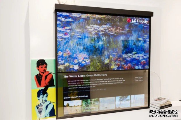 這當中比較屬於家用的,是上圖的「OLED Shelf」。它其實是兩片透明的 55 吋 OLED 螢幕疊在一起,然後在頂端有置物的平台,產生「書架」的意像。LG Display 的想法是這兩個面板可以一個顯示電視畫面、另一個顯示智慧家庭的操作;或是兩個都用來顯示藝術畫作等。