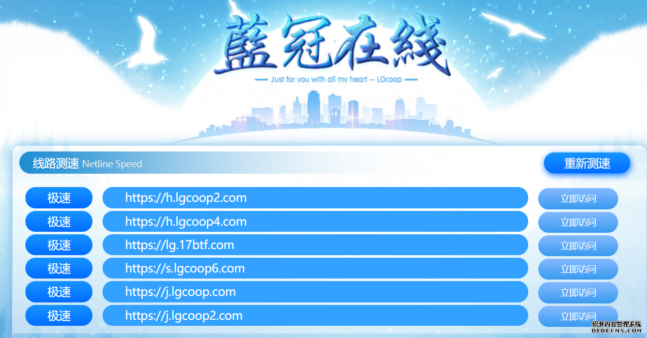 1、蓝冠平台本身有提供用户一个蓝冠平台测试网址:https://k.lgcoop3.com/。用户可以打开网址后,选取列表上方最快速的网址登陆。