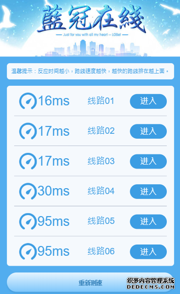 诚信与诚实是蓝冠平台给您最好的质量。而我们引进最新的技术,凭借最强的IT研发团队,我们不断升级改版蓝冠手机客户端的介面极稳定性。 蓝冠测速注册登录网址: https://k.lgcoop3.com/ 温馨提示:反应时间越小,路线速度越快,越快的路线排在越上面。 如遭遇版本上无法升级或是手机不支援等技术性问题,请与蓝冠代理联系Q5825-5957。